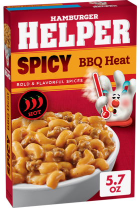 Whip up delicious midweek dinners with this Hamburger Helper Spicy BBQ Heat pasta meal made for the spicy taste you love most. Add Your Own Twist! Turn up the flavor by stirring in cooked corn and shredded cheddar cheese before topping with sliced green onions just before serving.