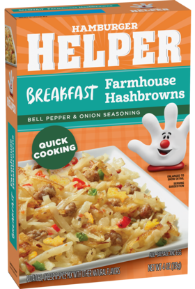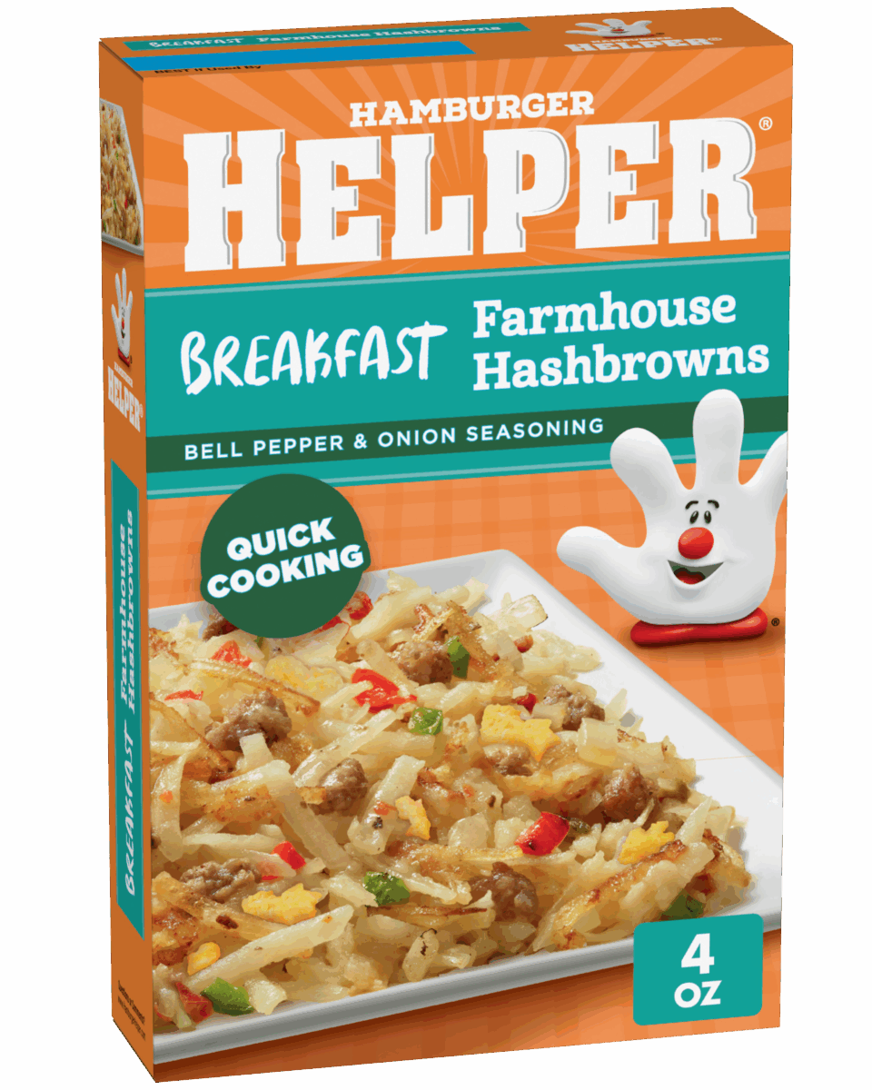 - America’s favorite Hamburger Helper Now Serving Breakfast! A deliciously seasoned hashbrown entrée.