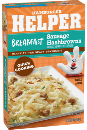 - America’s favorite Hamburger Helper Now Serving Breakfast! A deliciously seasoned hashbrown entrée.